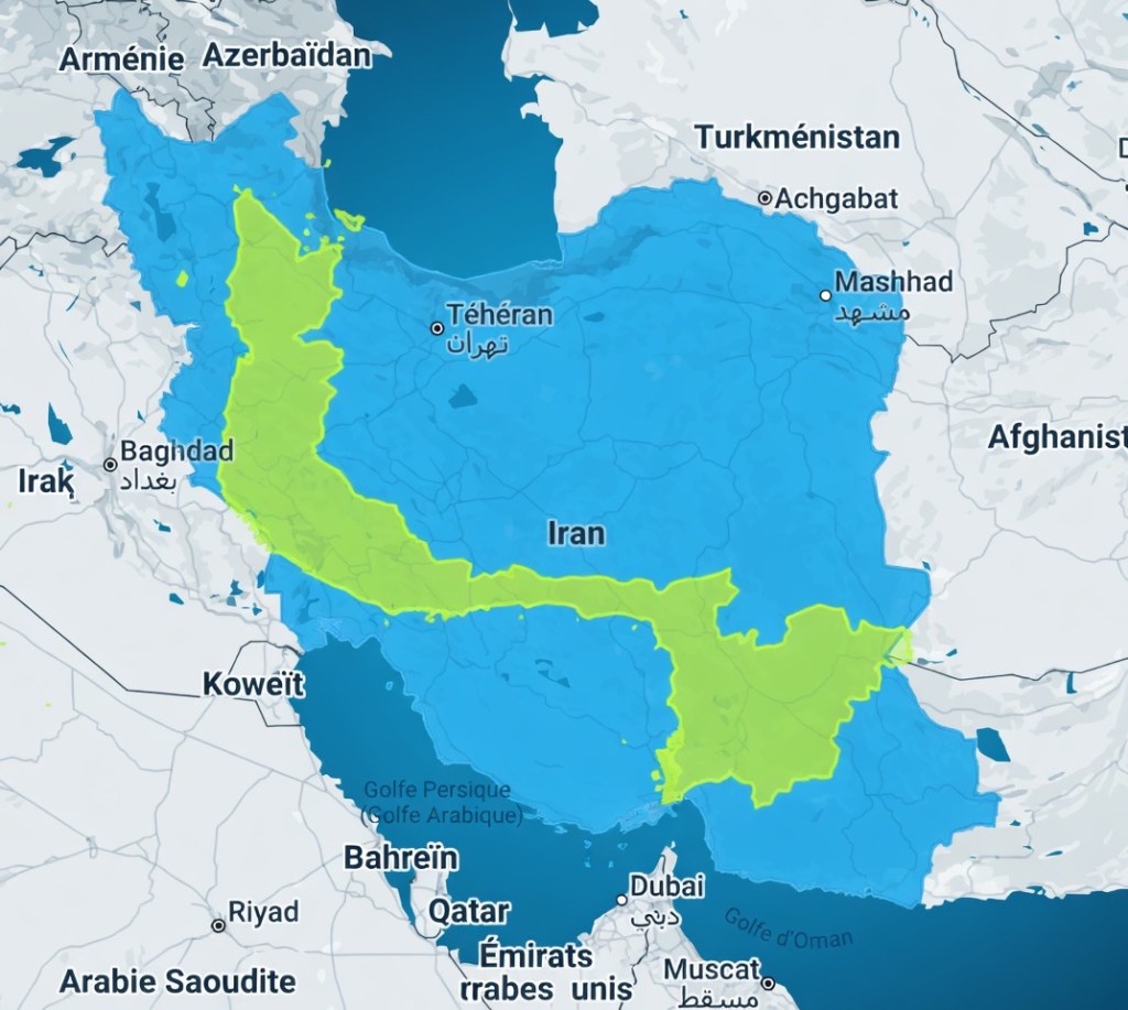 Frontalier immédiat. Toute frappe sur l’ouest ou le centre de l’Iran enverrait des retombées directes sur Bagdad et le sud irakien en quelques heures.