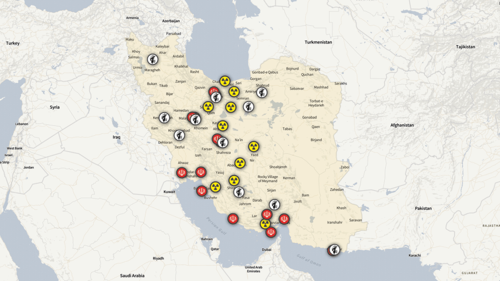 Cible principale. Les sites nucléaires (Bushehr, Natanz, Fordow, Ispahan) libéreraient des nuages radioactifs (césium-137, iode-131, strontium-90) sur des centaines de kilomètres. Des millions de civils directement exposés.